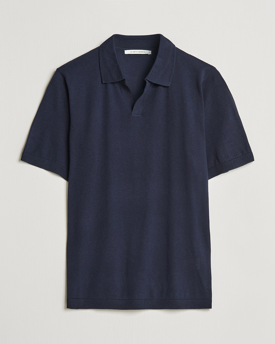 Mies | Pikeet | A Day's March | Ebro Cotton/Merino Open Collar Polo Navy