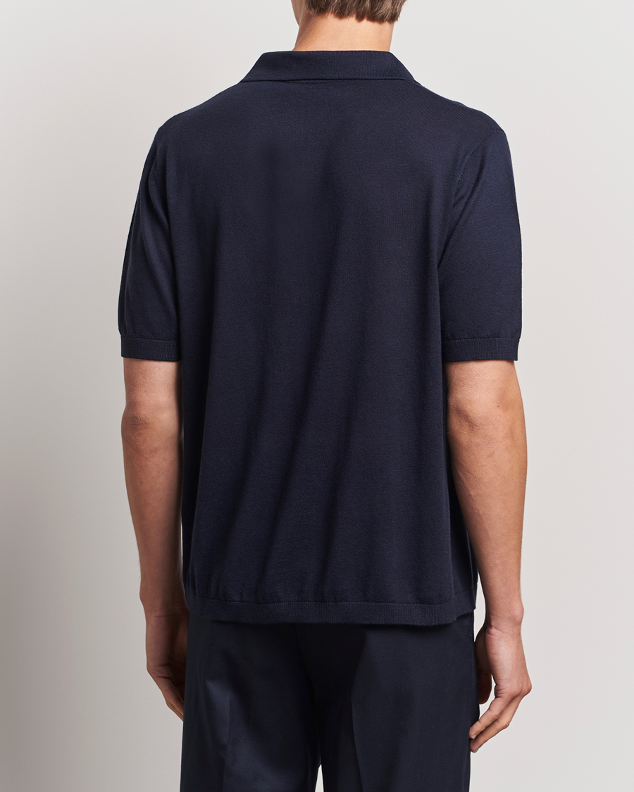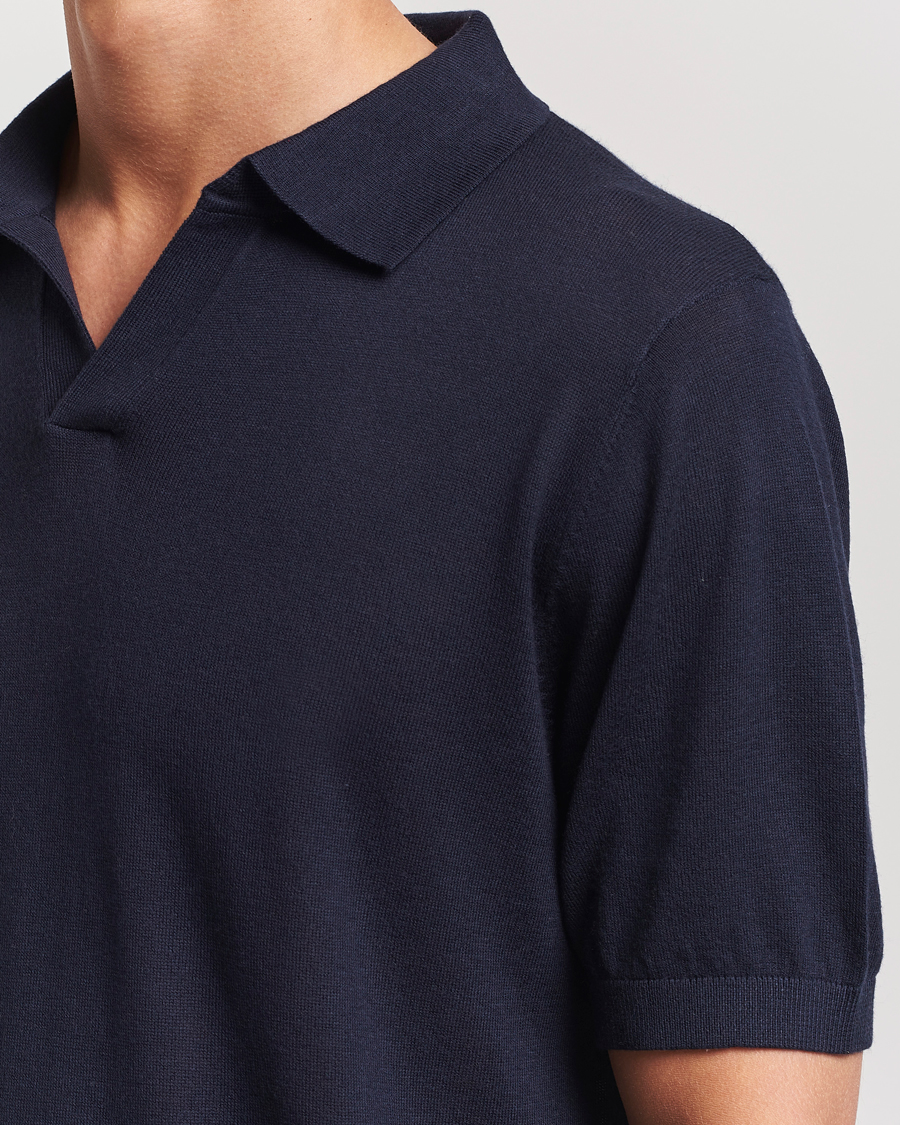 Ebro Cotton/Merino Open Collar Polo Navy