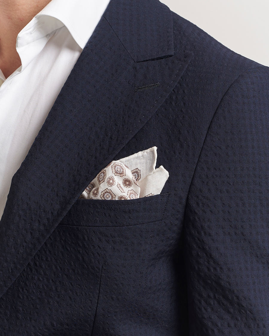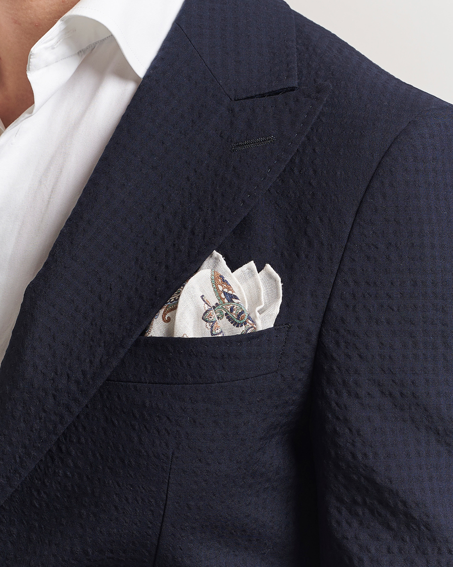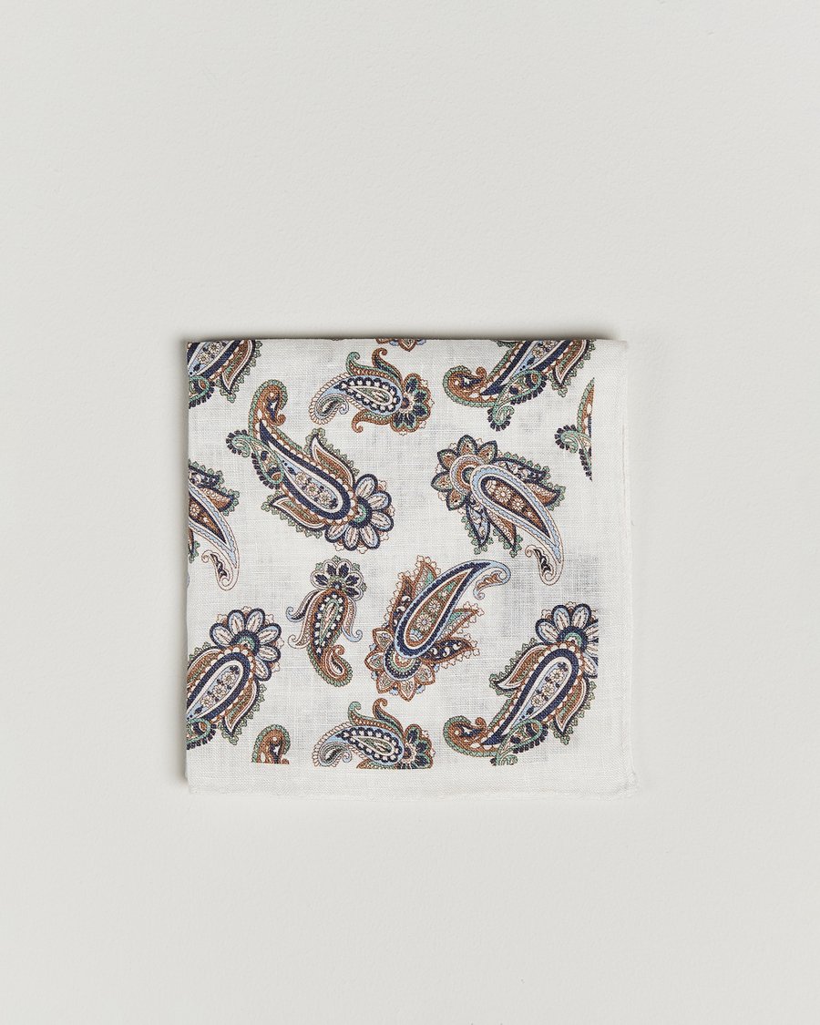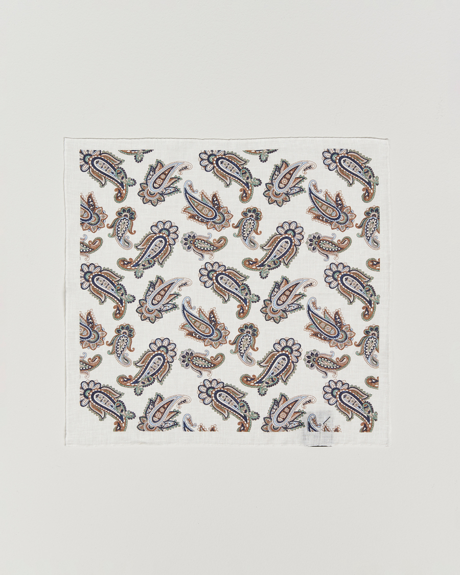 Linen Printed Large Paisley Pocket Square Cream