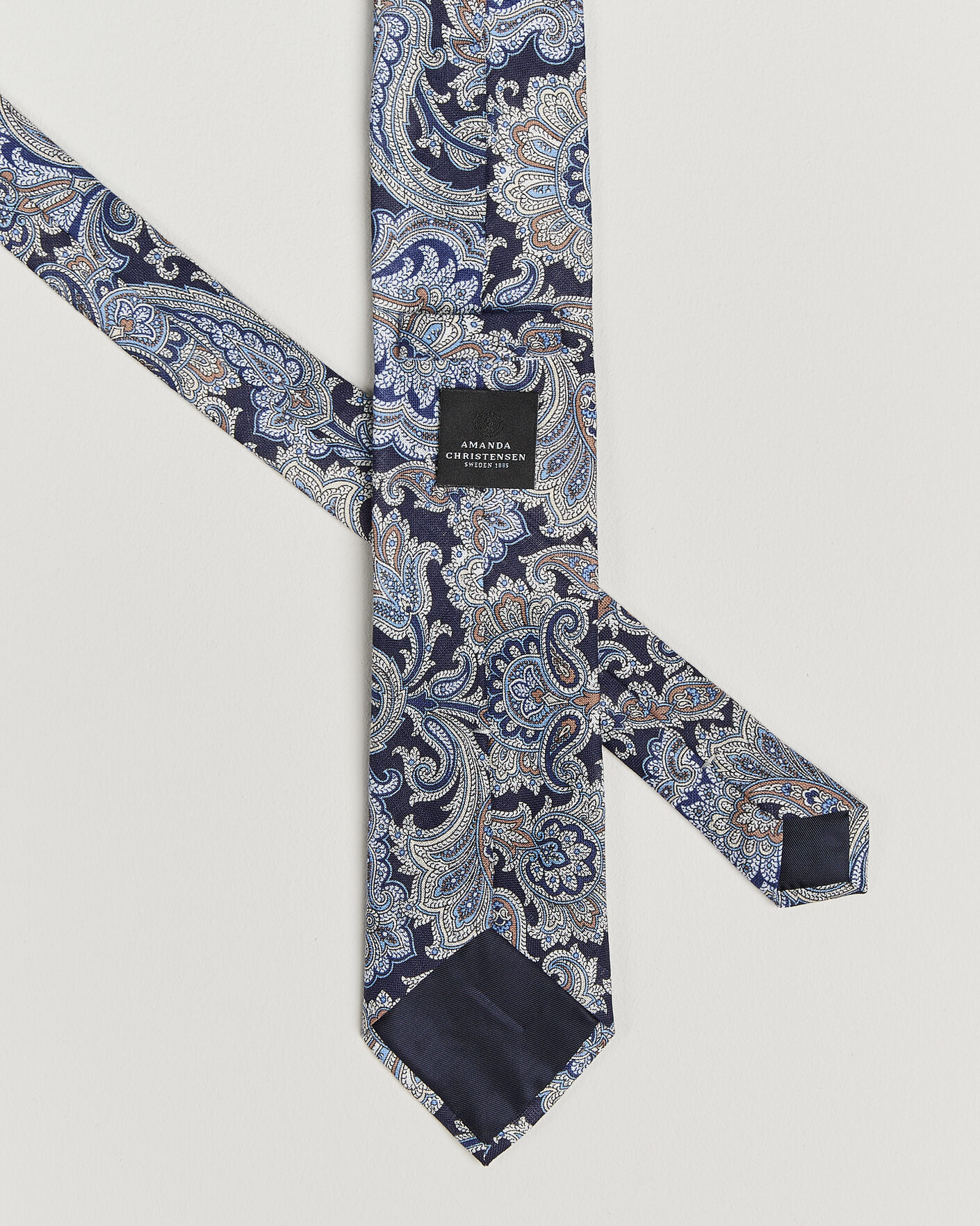 Amanda Christensen on Ruotsin johtava miesten asusteiden brändi ja on vuodesta 1885 lähtien toimittanut klassisia, hyvin räätälöityjä vaatteita modernille herrasmiehelle. Kun perustaja Amanda Christensen alkoi valmistaa rusetteja ja kravatteja Tukholmassa 1800-luvun lopulla, luotiin perusta perinnölle, joka edustaa ajatonta tyyliä ja korkeinta laatua. Vuodesta 1949 yritys on ollut kuninkaallinen hovihankkija ja tarjoaa nykyään solmioita, huiveja, taskuliinoja, sukkia ja kalvosinnappeja – yksityiskohtia, jotka vahvistavat persoonallisuutta ja tyyliä tietoisten miesten keskuudessa ympäri maailmaa. Suuri osa tuotannosta tapahtuu Italian Comojärven ympäristössä, missä käsityötaidot ovat säilyneet sukupolvien ajan.