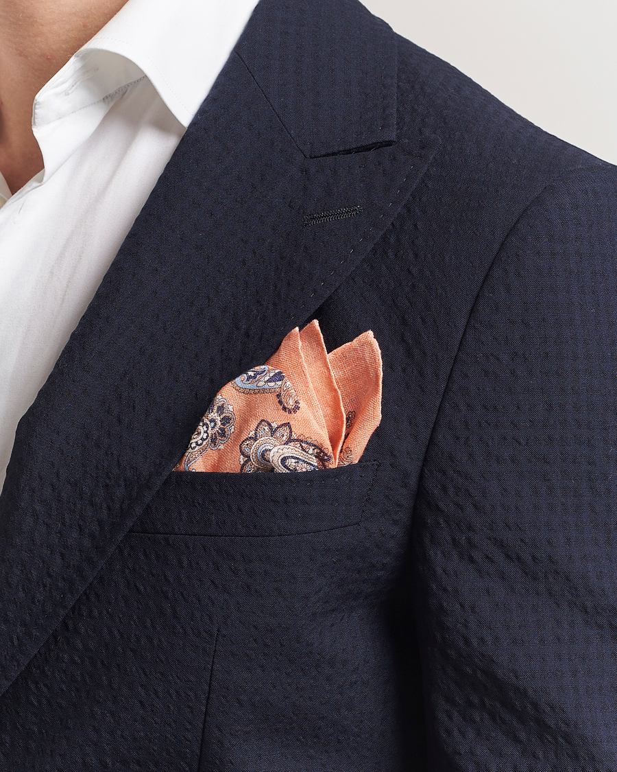 Tonal Paisley Silk Pocket Square Cream