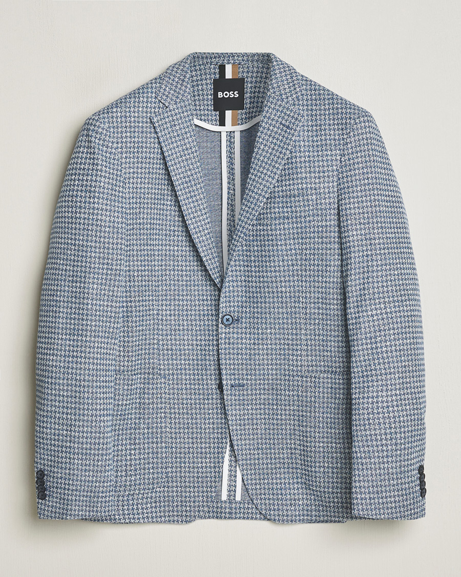 Hanry Jersey Linen Checked Blazer Bright Blue