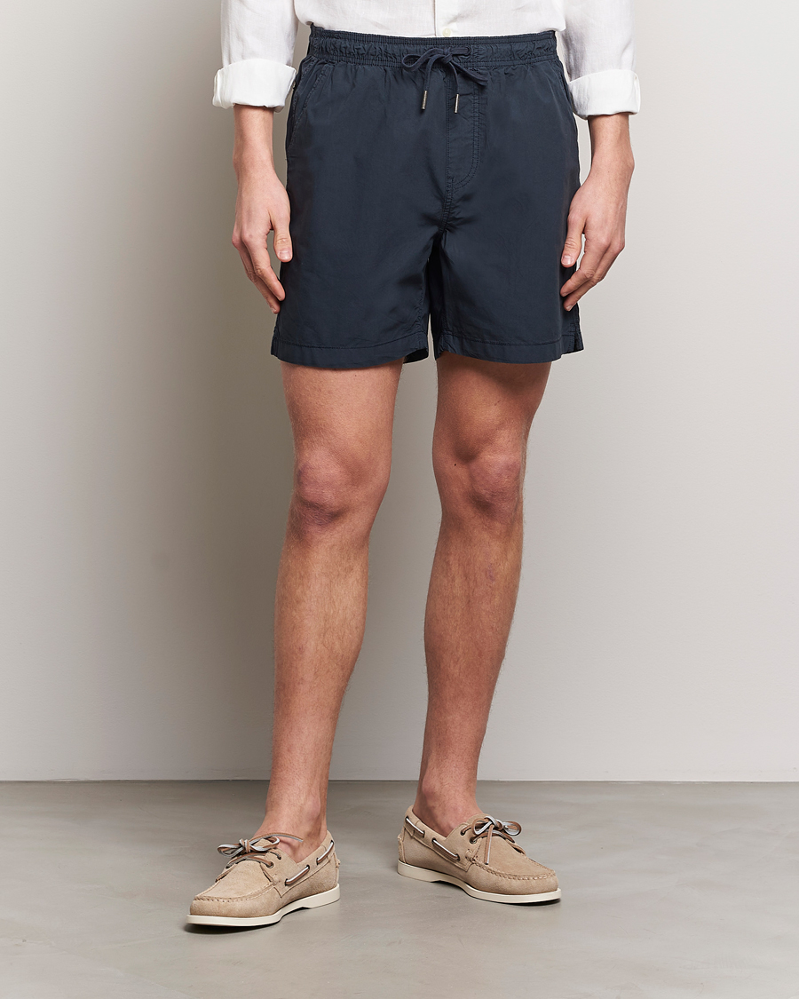 Tapered Linen Chino Drawstring Shorts Dark Blue