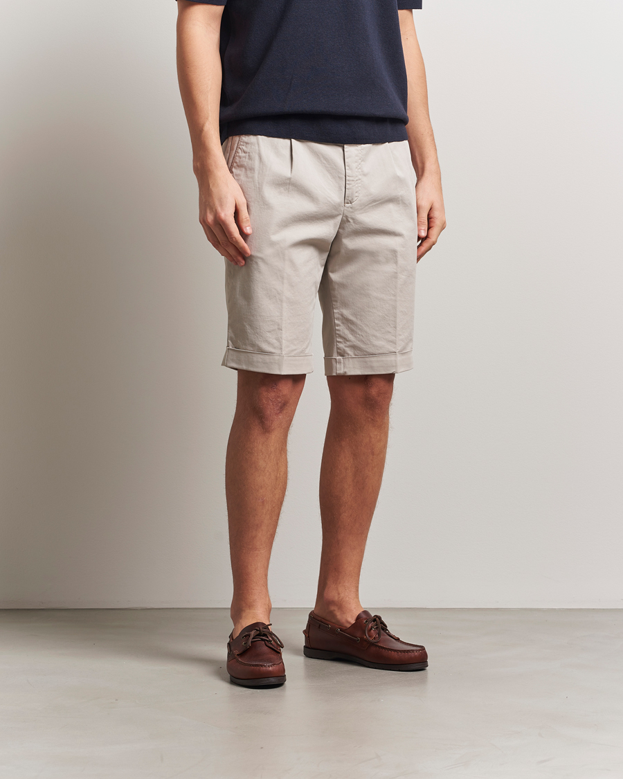 Pleated Cotton Shorts Beige