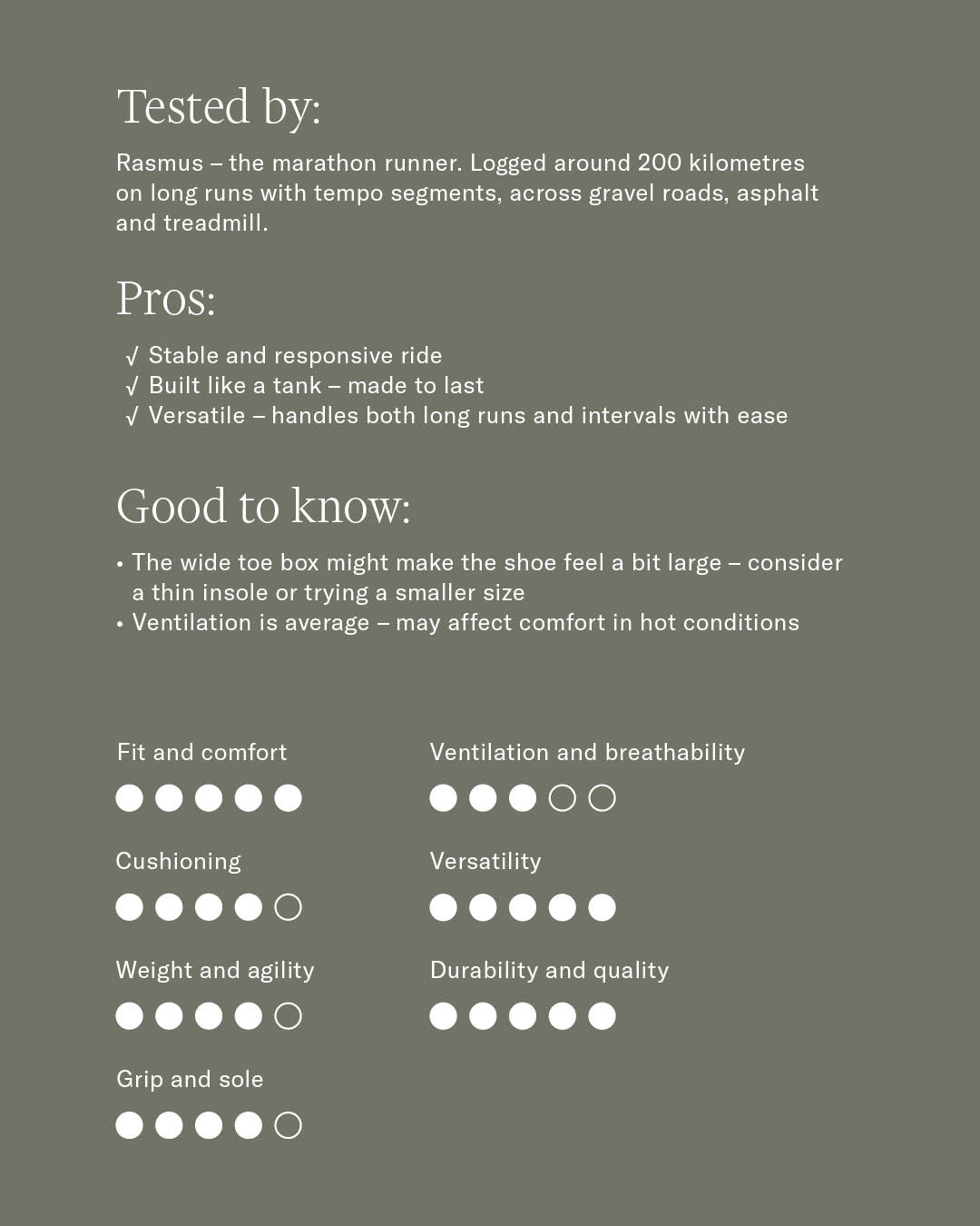 "The slightly wider fit combined with a consistently responsive feel makes this a reliable companion, especially for longer runs."