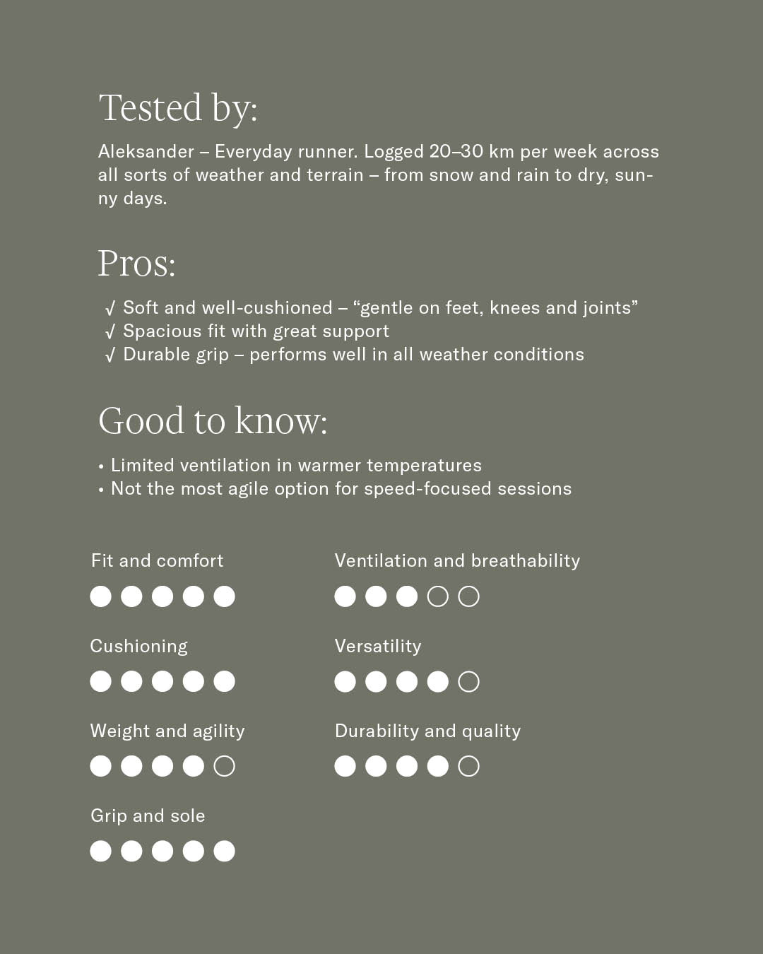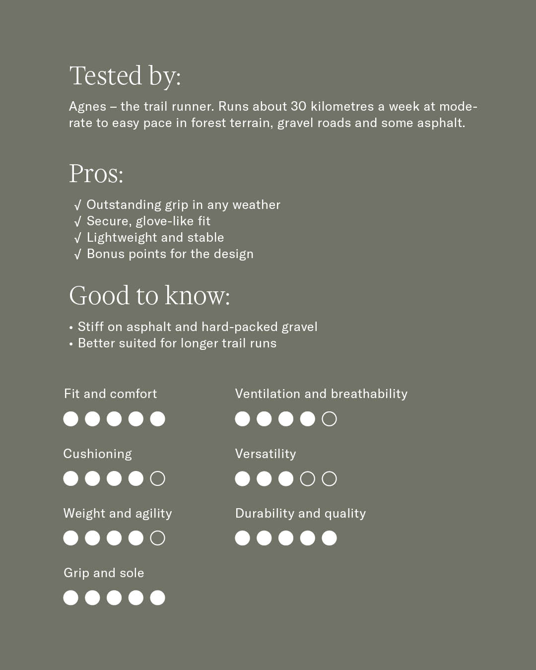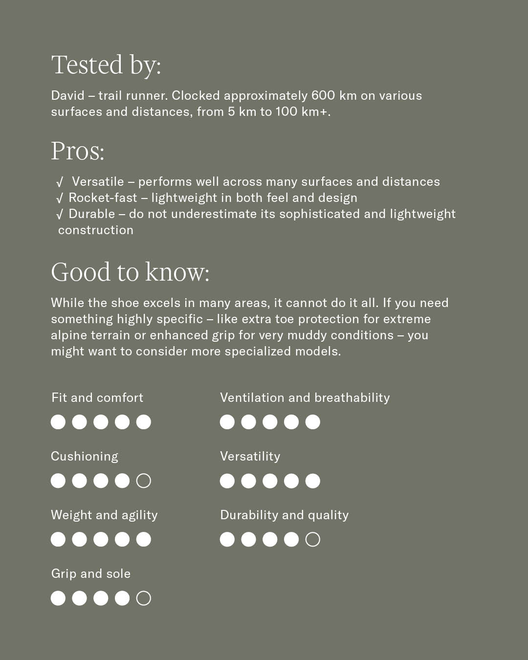 "A high-performing trail shoe developed by runners, for runners – ideal for those who want reliable comfort and durability across varied terrain."