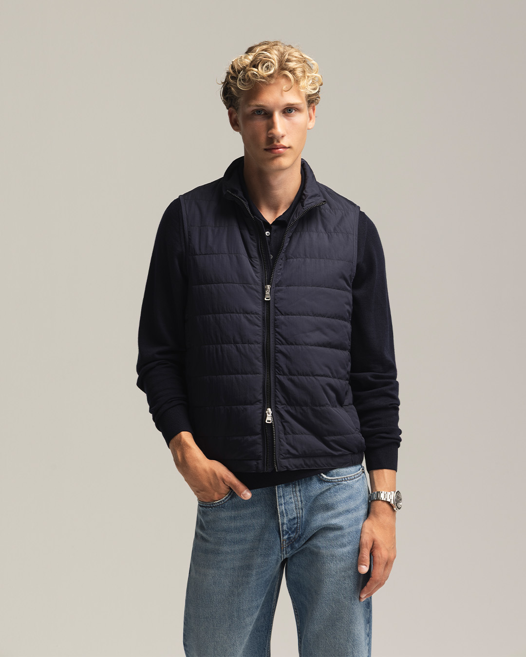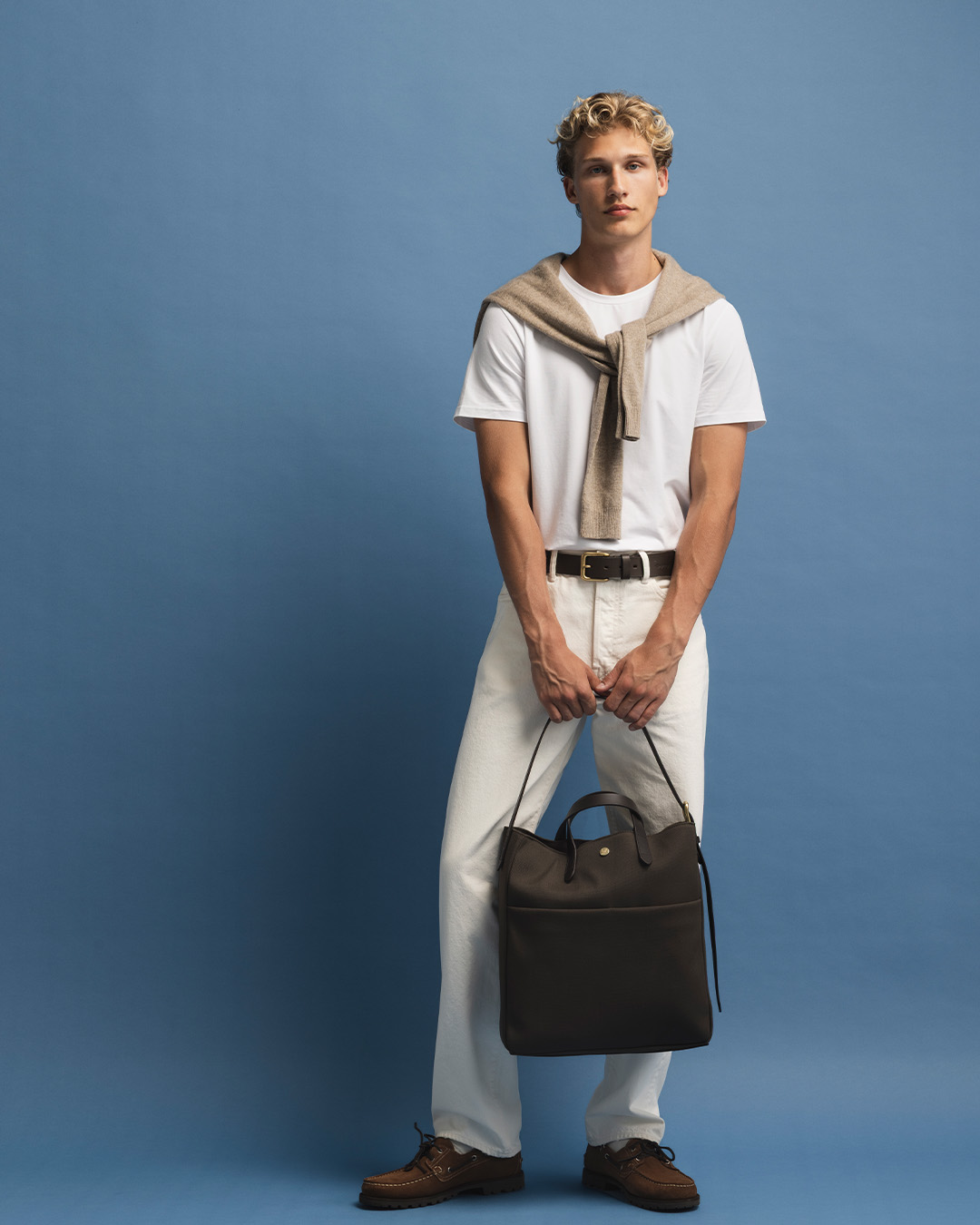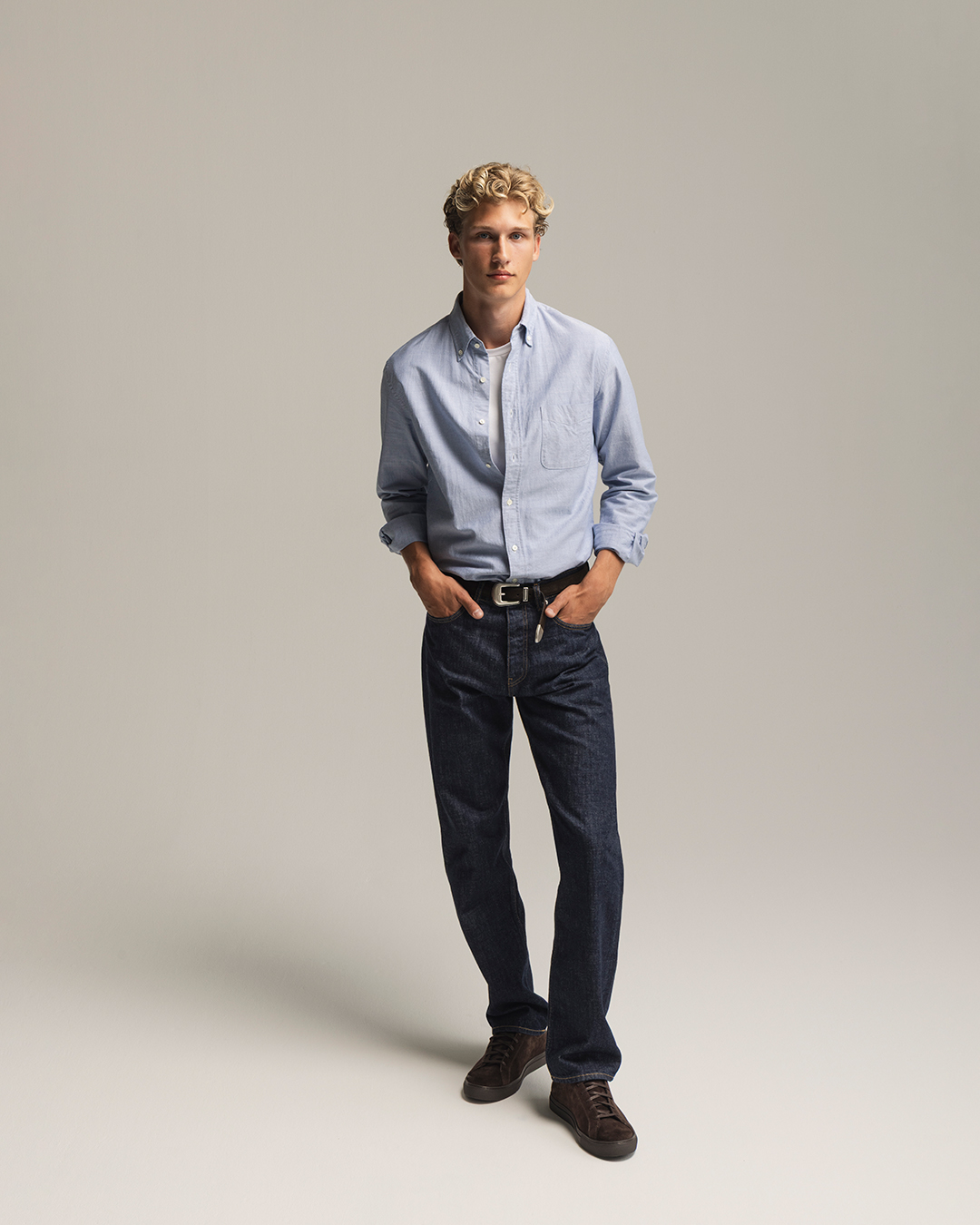 At the heart of the lookbook are classics such as jeans, Oxford shirts, T-shirts, lightweight knitwear, and shoes like loafers and sneakers. Timeless wardrobe staples that, with a few thoughtful details and new combinations, can take on a personal twist—either by adding versatile new pieces or by finding new ways to wear what you already own. Small changes that make a big difference as the temperature starts to shift. Try, for example, wearing your blue Oxford shirt with jeans and white sneakers for a more relaxed look, instead of the classic loafers you might have worn earlier this year.