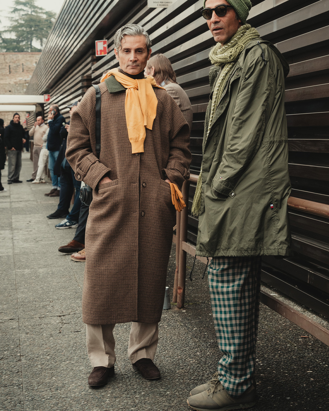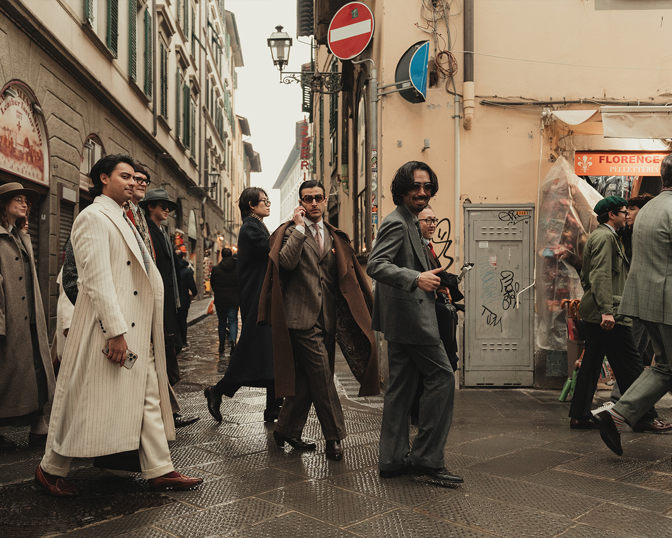 The waxed jacket was seen everywhere in Florence. Practical, durable, and timeless – an outerwear piece that balances function and style without overwhelming.