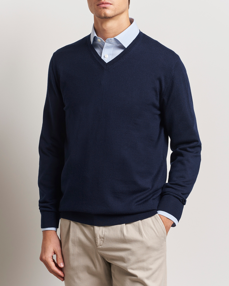 Pure Merino V-Neck Jumper Navy