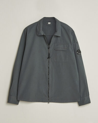 Garment Dyed Gabardine Zip Overshirt Light Grey