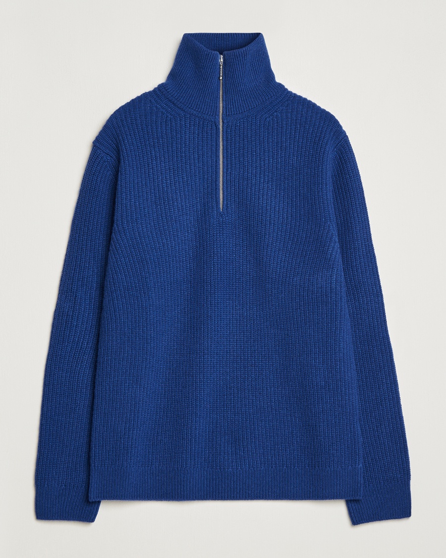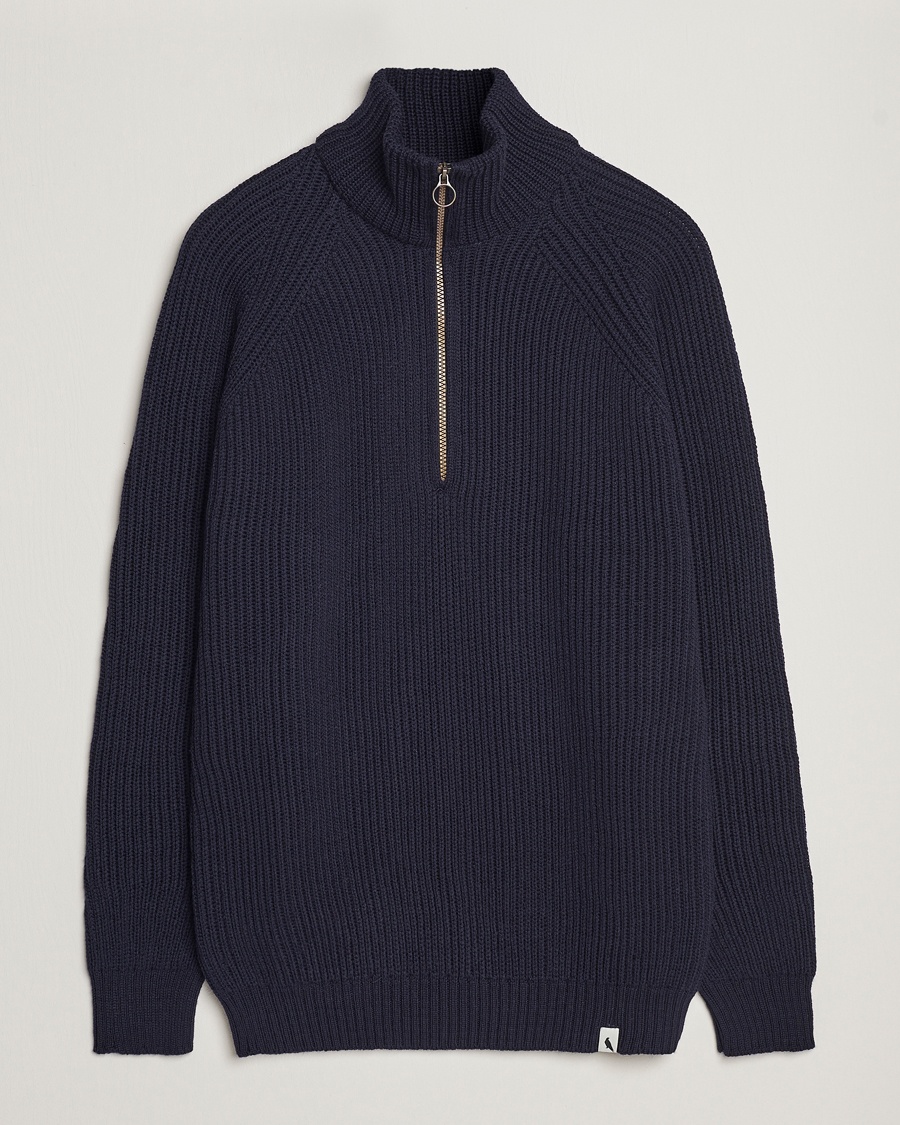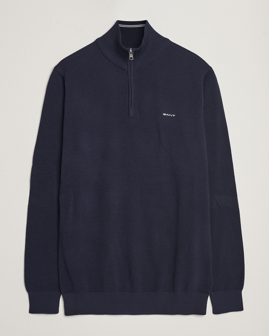 Cotton Pique Half-Zip Sweater Denim Blue Melange