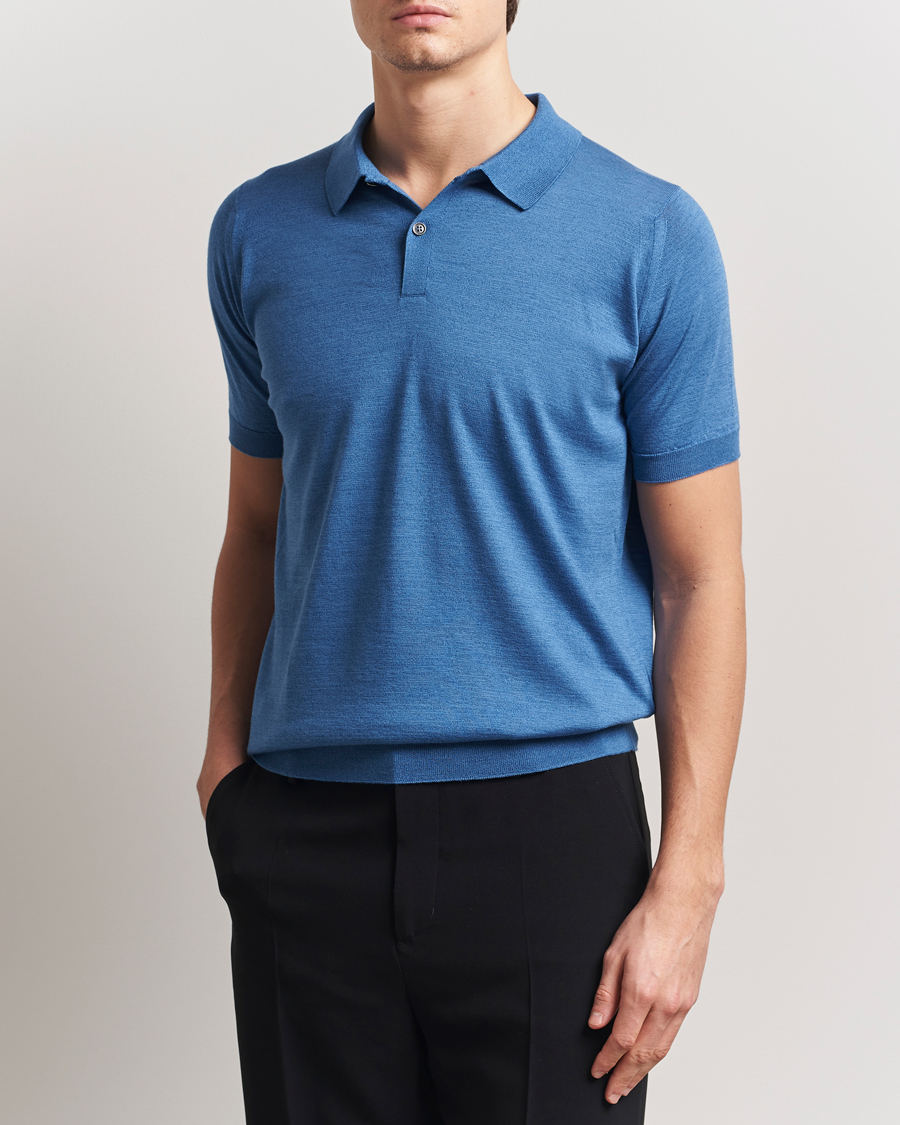 Leyburn Merino/Sea Island Cotton Polo Ocean Blue