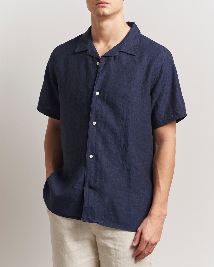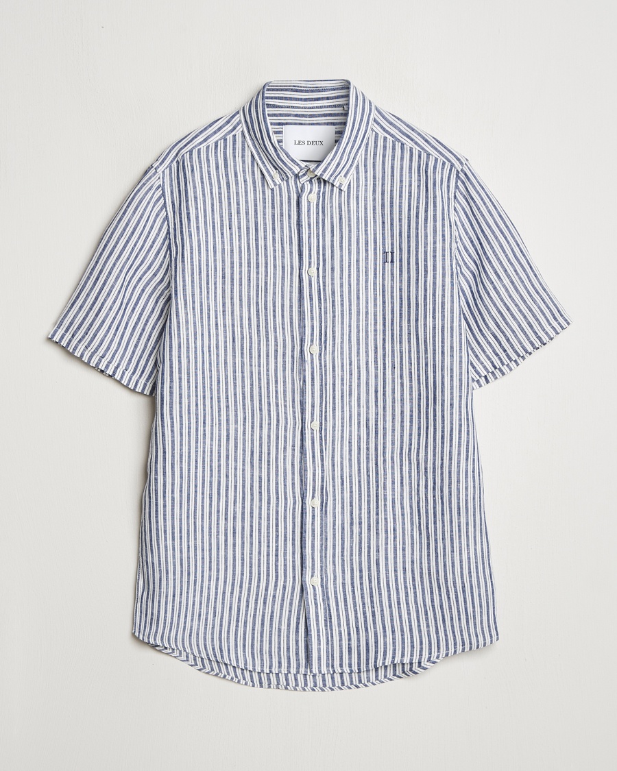 Kris Linen Striped Short Sleeve Shirt Blue/Ivory