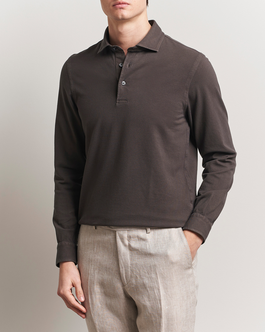 Custom Slim Fit Long Sleeve Polo Cedar Heather