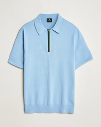 Cotton Knitted Half Zip Polo Light Blue