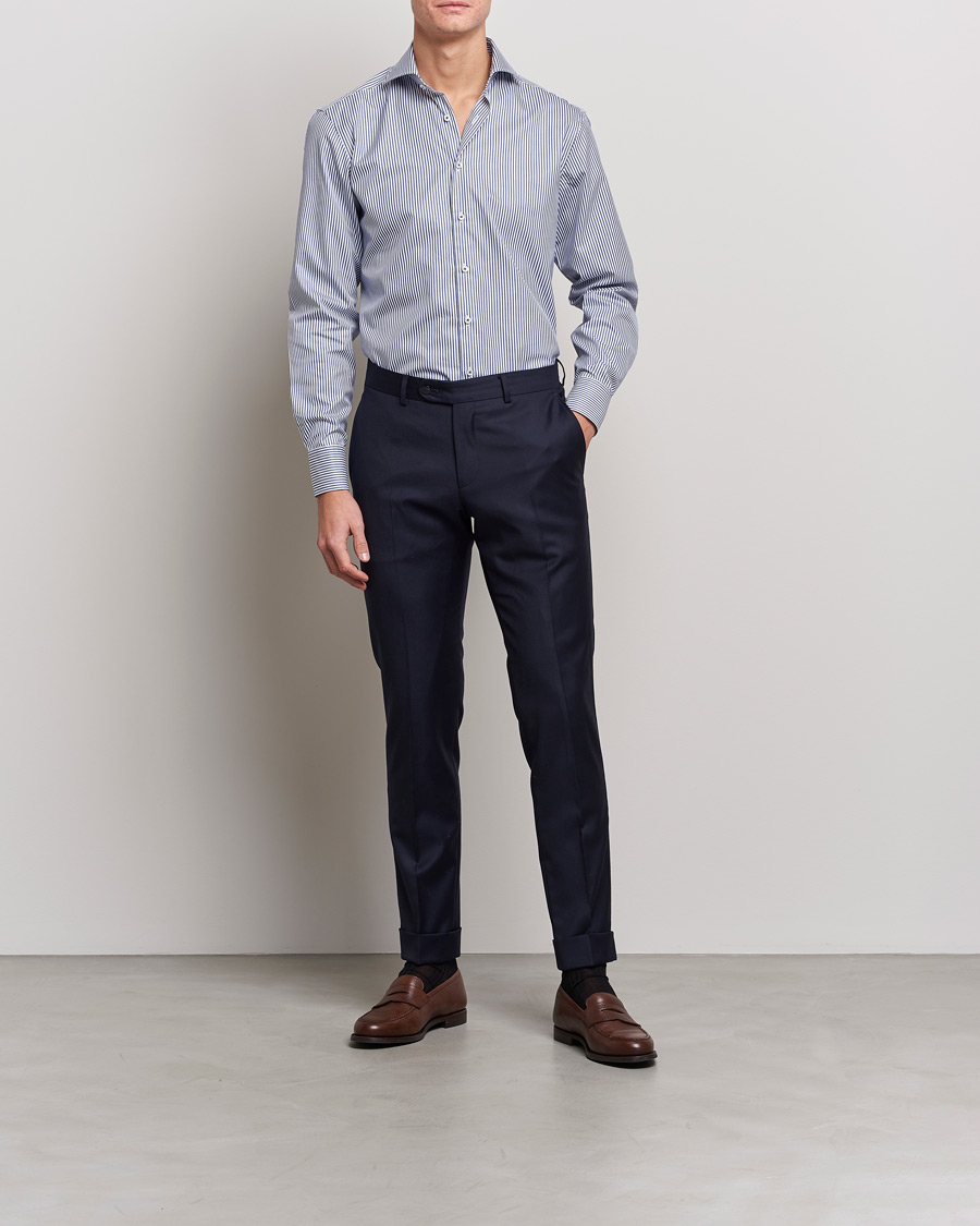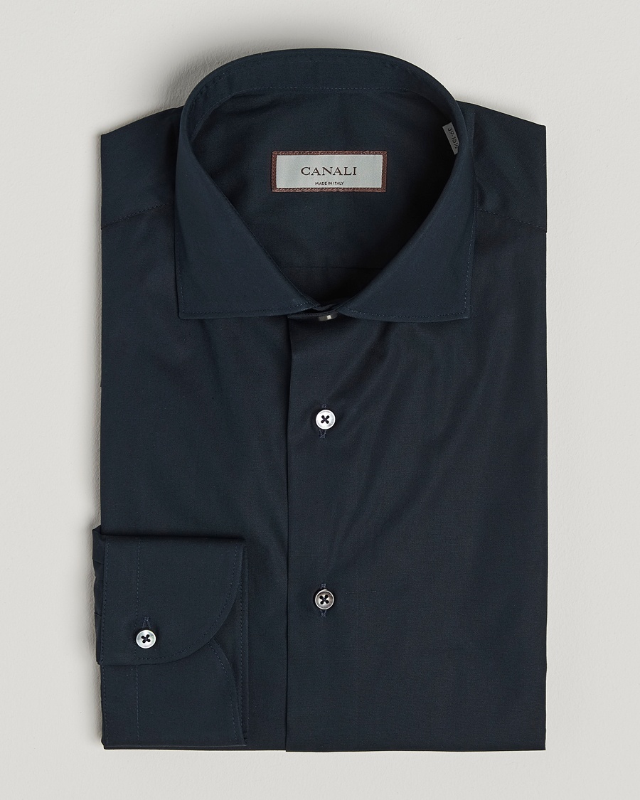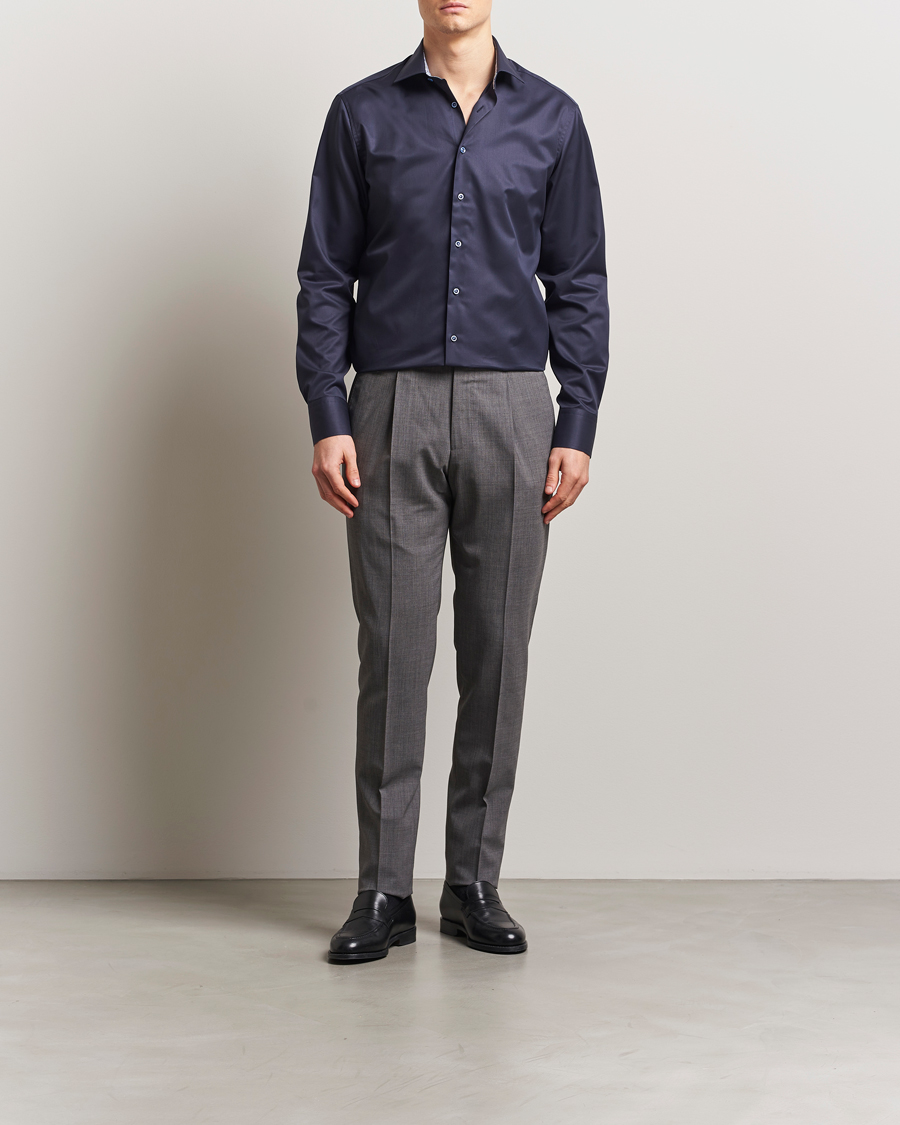 Fitted Body Contrast Cotton Twill Shirt Navy