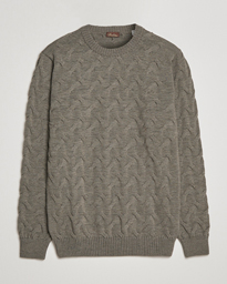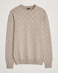 Heavy Cable Merino Crew Neck Light Grey
