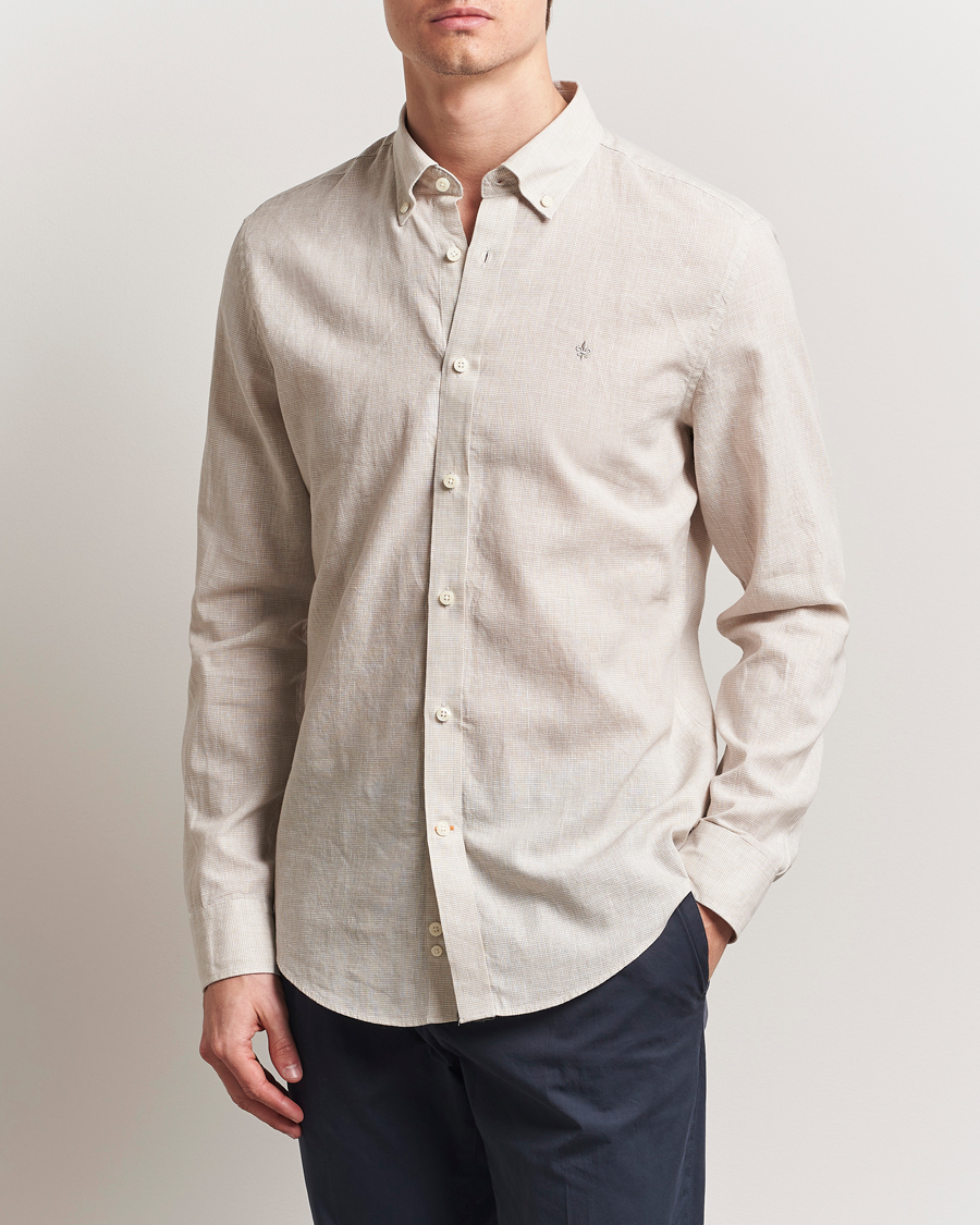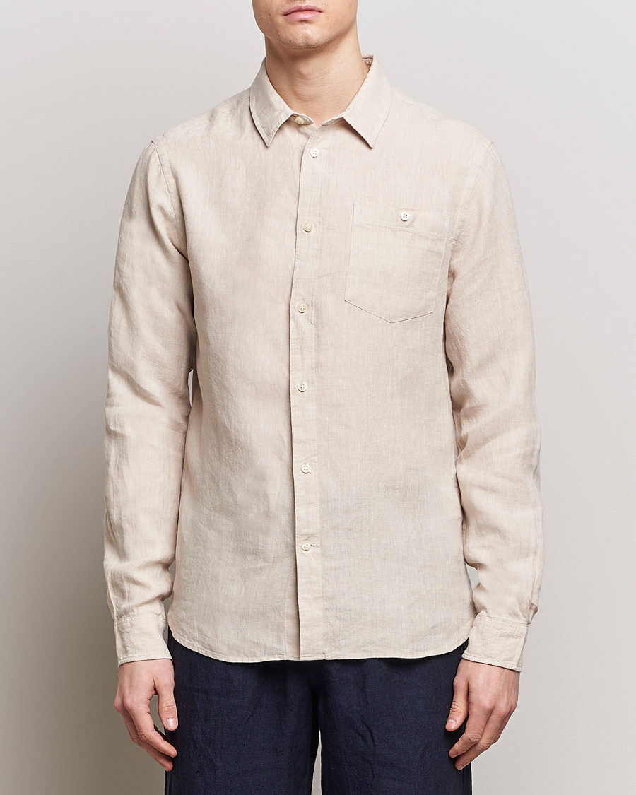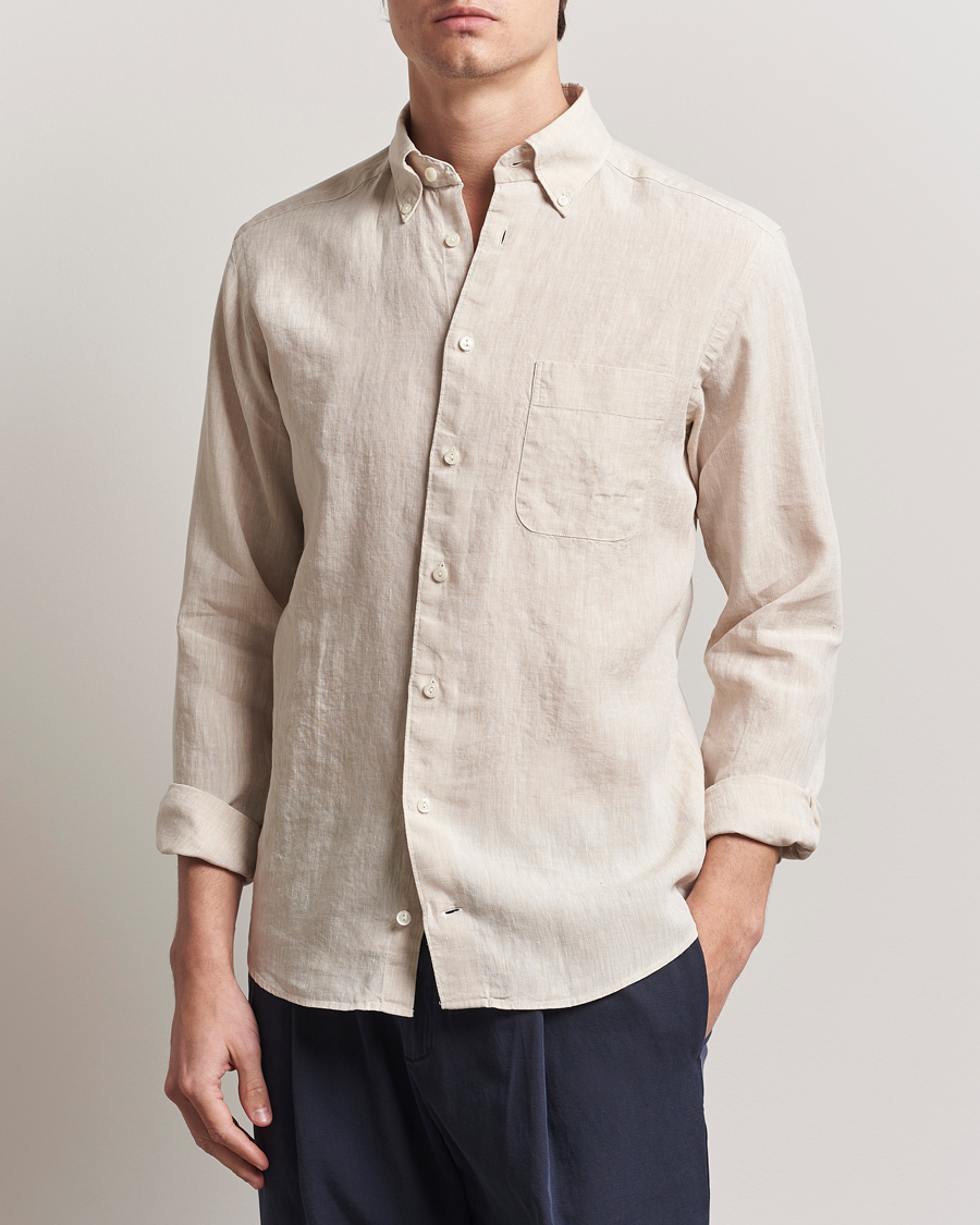 Slimline Cut Away Linen Shirt Beige