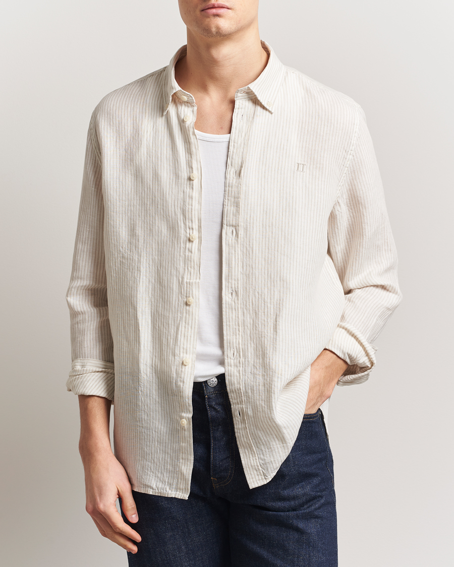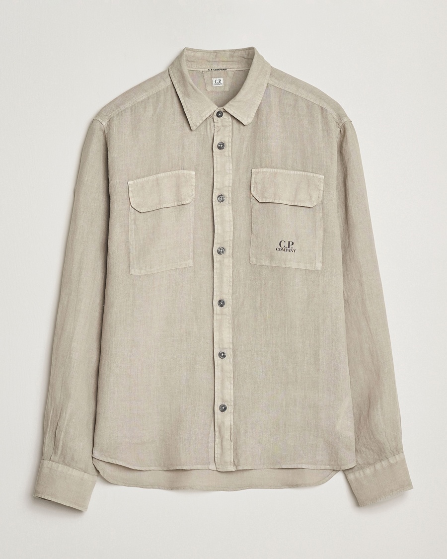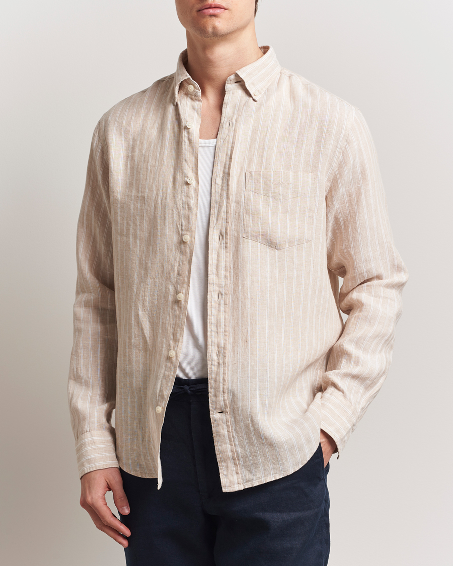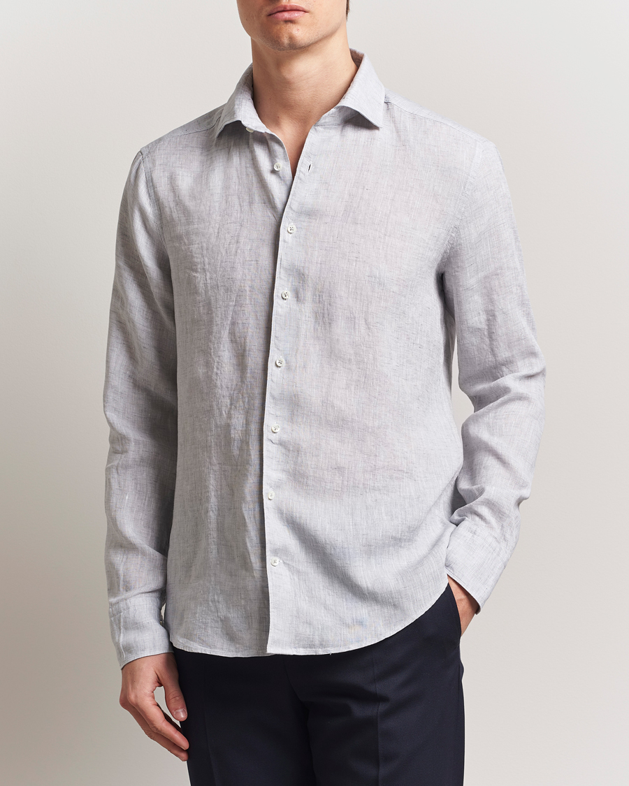 Slimline Cut Away Linen Shirt Beige