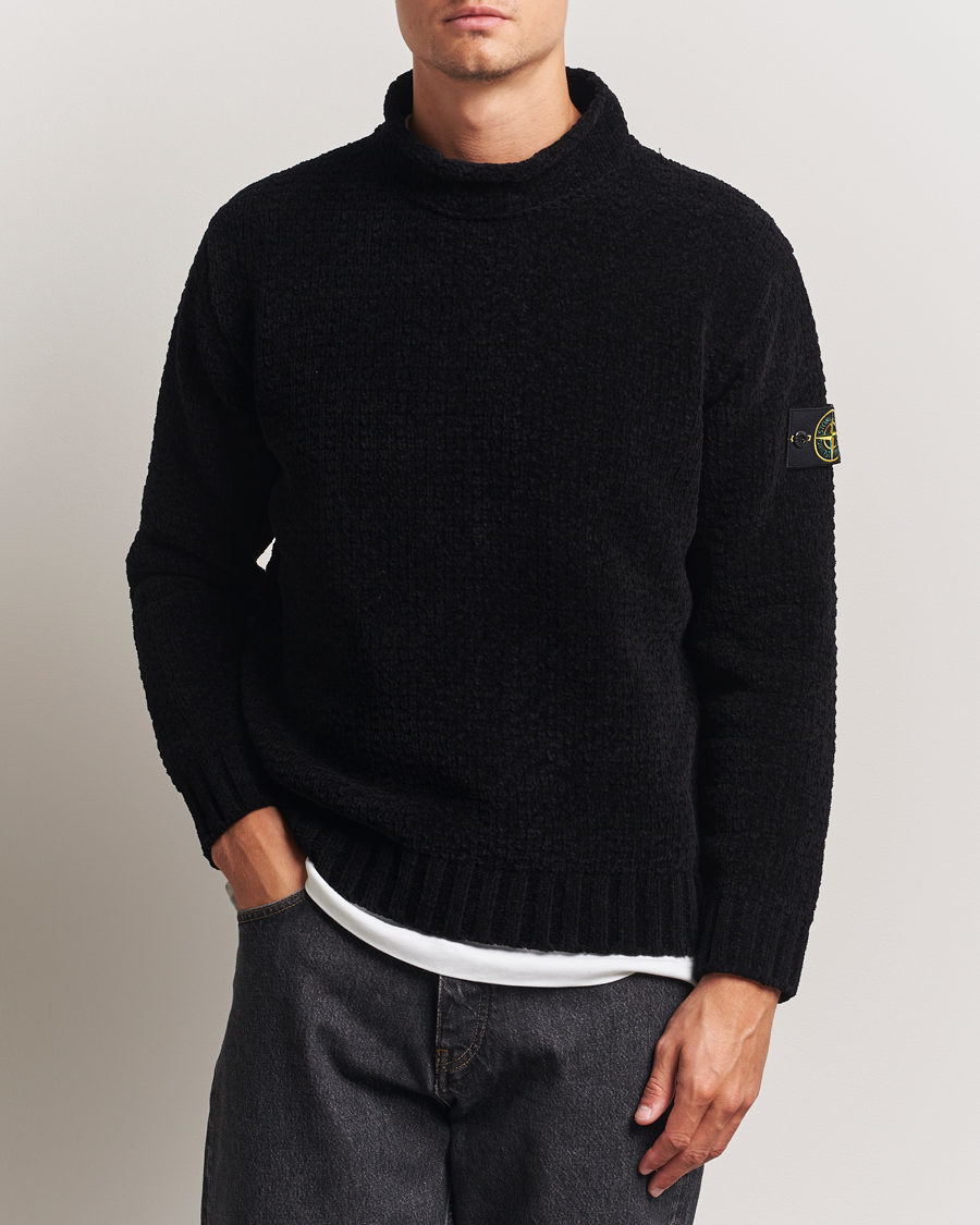 Cotton Chenille Knitted Mock Neck Black