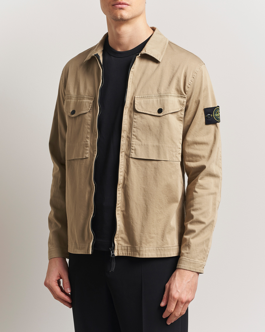 Cotton Stretch Zip Overshirt Biscuit
