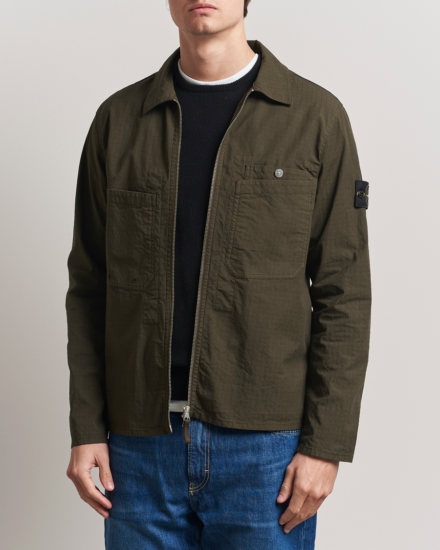 Stretch Ripstop Cotton Zip Overshirt Military Green