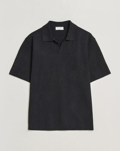 Maelon Cotton/Linen Knitted Polo Black
